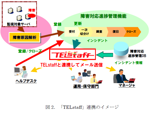 「TELstaff」と連携させることで、「RevenueMax Ecsia」側から自動的にインシデント(システム運用における障害対応の管理単位)