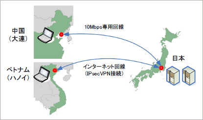 これらのニーズに応えるため、「SecureOnline」のセンタにネットワーク高速化技術を取り入れています。本年2~3月に中国とベトナムで性能評価を実施し、