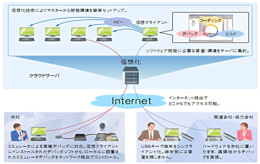 クラウドコンピューティング技術を用いて効率化する「クラウド型 組込み開発環境ソリューション」を2010年5月12日より提供開始します。