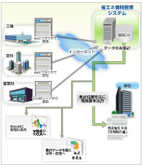 そこで、日立ソフトでは、複数拠点のエネルギー使用量等を、インターネットを介し一元管理し、集計・