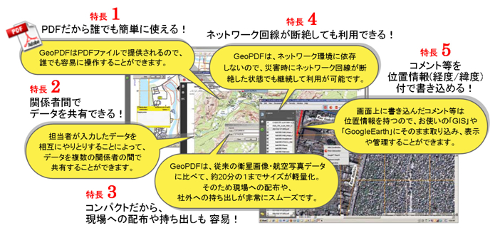 ※1における戦略的パートナーシップを提携しました。その第1弾として、地理情報システム(GIS)データや衛星画像をPDFへ出力して簡単に利用できるTerraGo社が提供する「GeoPDF(ジオピーディーエフ)ソリューション」を2010年7月28日より提供開始します。