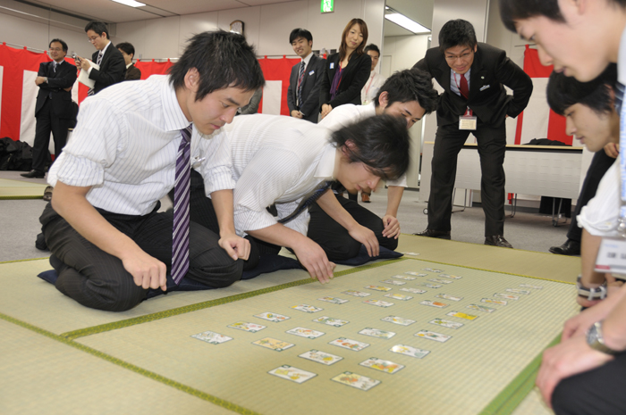 このような大会を開催した目的のひとつに“「人財」の育成”を挙げていますが、近年の厳しい経済状況下において不安定になりつつある雇用情勢を背景に、日立システムでは「人財」を大切にしたいという思いから、第4回目となる今年は初の試みとしてかるた大会を二部制にし、新卒内定者の枠も加え、社員との活発な相互コミュニケーションを図ることも目的としています。