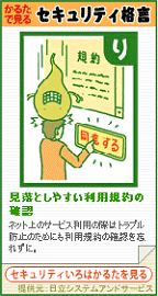 また、昨年末から販売を開始している「セキュリティいろはかるた」をベースとした「セキュリティ格言ブログパーツ(*1)」も、23日より公開します。一般のブログ・Webサイトに設置していただくことで、サイトの管理者やそのユーザーもセキュリティについて学ぶことができます。「セキュリティ格言ブログパーツ」の公開に併せて「ブログパーツ貼って学ぼうキャンペーン」を実施します。