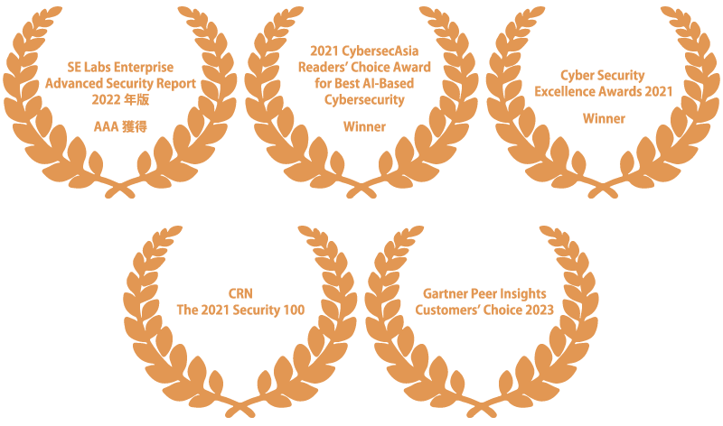 2021年にはCybersecAsia による 2021 年読者投票「Readers’ Choice Award」でAIベースサイバーセキュリティ部門賞「Best AI-Based Cybersecurity」を受賞。2022年にはSE Labsでの侵害対処テストにおいて、最高ランクである「AAA」を2年連続で獲得。その他数々の場で、脅威の検知と防御における有効性が高く評価されています。