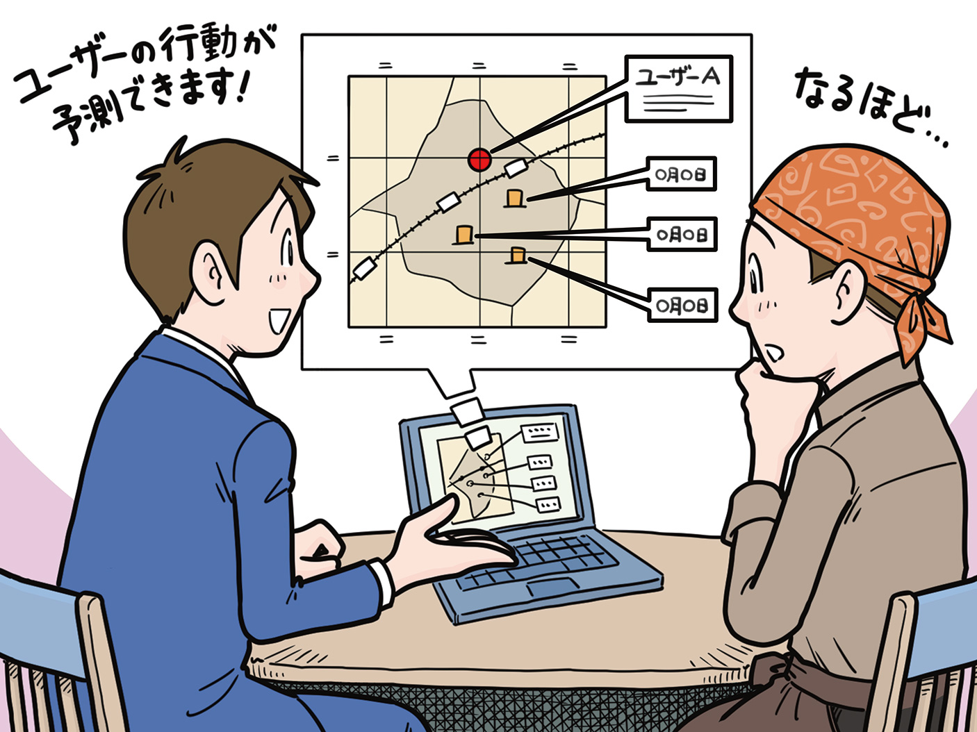 営業先の店舗でその地図とデータを提示し、「店舗まで歩いて10分のところに、大量のポイントを保有していて、当社のサービスも比較的よく利用してくださる顧客がこれだけいます。当社と提携すればこれらのユーザーを取り込むことが可能になります」という形で営業トークを展開。