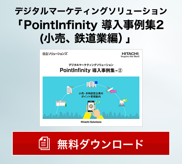 そんな施策を行う際に役立つソリューションのひとつが、日立ソリューションズが提供する「PointInfinity」です。 会員・ポイント管理を中心とした顧客との繋がりをつくるマーケティング統合型CRMとして、多くの企業が導入しています。