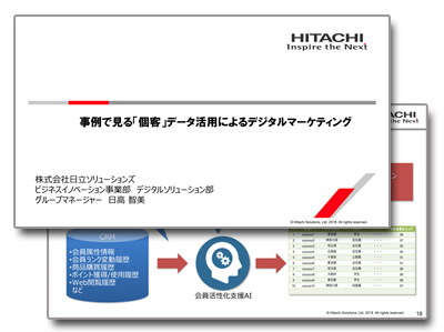 講演の最後に、日高は、「デジタルマーケティングとは、データでお客さまを『個』として捉え、あらゆるチャネルでマーケティングを最適化することです。特に、マーケティング最適化の実現に向けては、データの収集と統合のためのITと、データを活用するためのITが必須となります。日立ソリューションズはシステムインテグレータだからこそ、マーケターをお手伝いできる解決策が豊富にあると考えています」と話し、講演のまとめとしました。