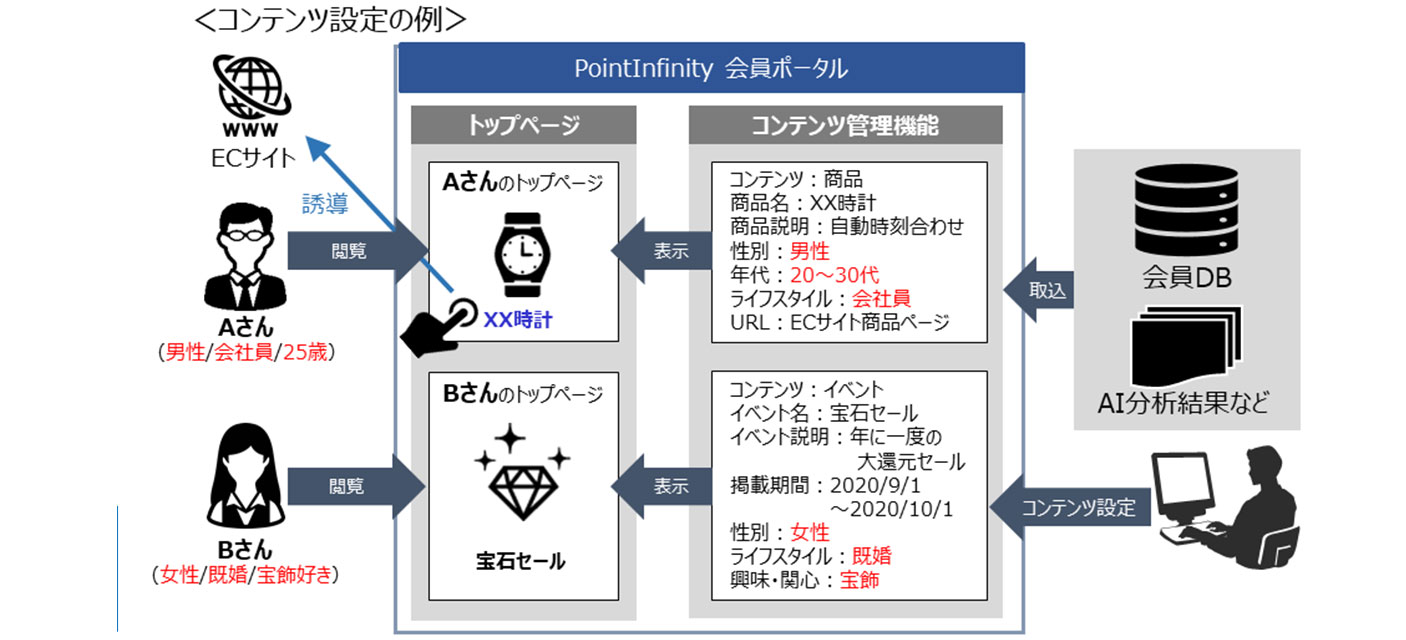PointInfinityで蓄積された会員データや行動データをAIで分析し、その結果を会員ポータルで表示することでエンゲージメントを高めていくと語りました。