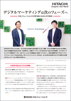 世の中のデジタルシフトに伴い、AI/生成AI の活用に注目が集まっている。実際、ビジネスの現場ではどのように浸透し、どのような課題があるのだろうか。本記事では、企業のマーケティングにおけるAI/生成AI の活用検討、デジタルマーケティングへの適用をテーマに、日立ソリューションズの渡邉氏と矢田氏へインタビュー。同社が展開するデジタルマーケティングソリューション「PointInfinity(ポイントインフィニティ)」を中心に、AI/生成AIを活用したビジネス成長や生活者とのコミュニケーションの取り方を伺った。
