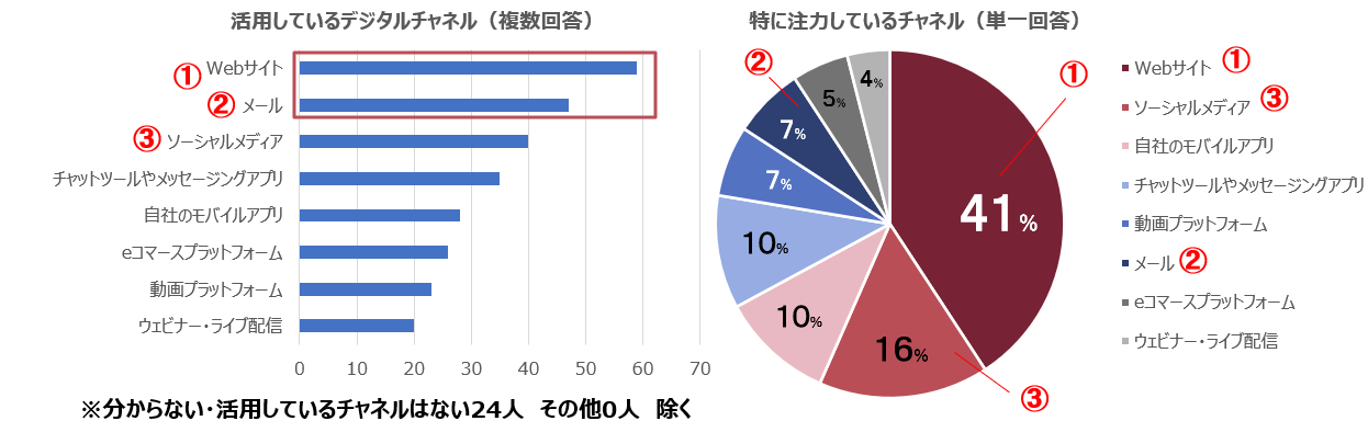 活用しているデジタルチャネル・特に注力しているチャネルは「Webサイト」