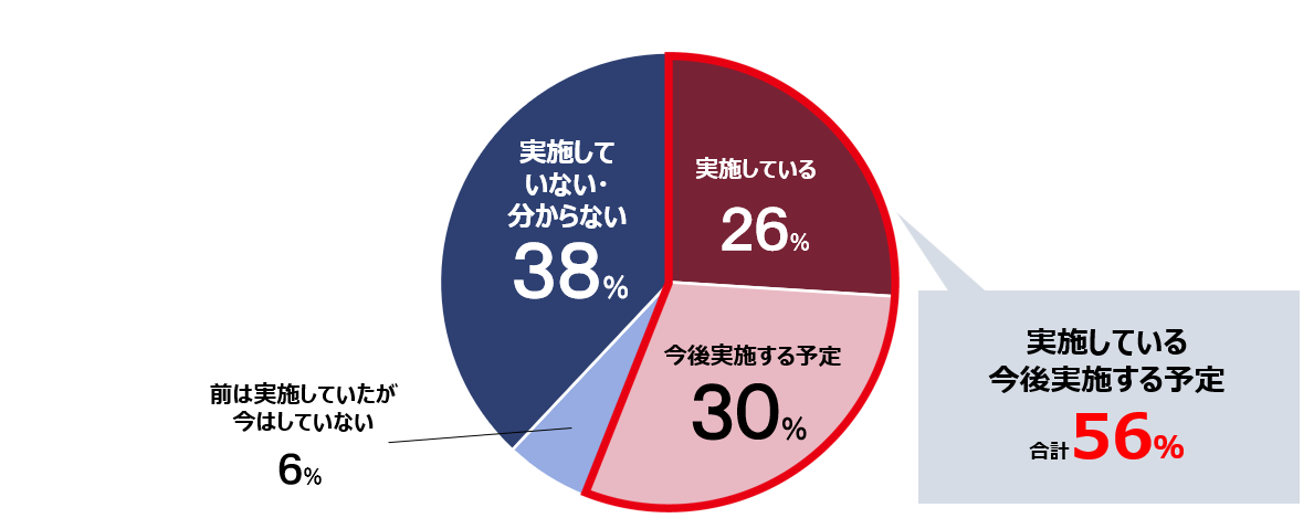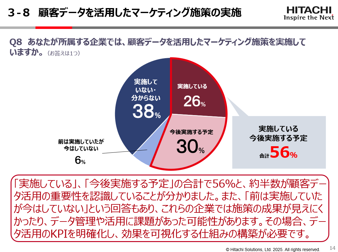 今回の回答者のうち、顧客データを活用したマーケティング施策を実施しているのは56%