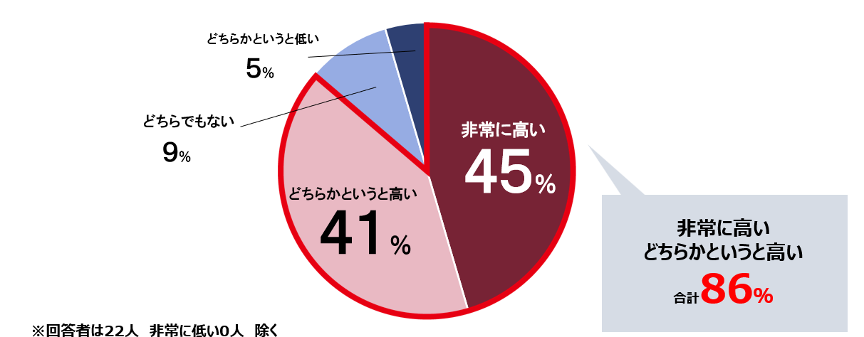今回の回答者のうち、マーケティング業務で活用しているAIによる費用対効果を「高い」と感じているのは86%