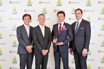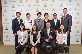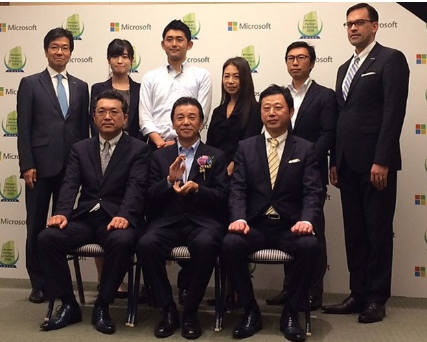 マイクロソフトビジネスソリューションエグゼクティブ・ヴァイスプレジデントのキリルタタリノフ(右から3人目)との記念写真 (Global Microsoft Partner of the Year, CRM 日系企業として初の受賞)