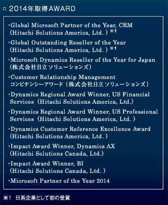 毎年 Dynamics のAWARDを多数受賞している、マイクロソフトのトップクラスパートナーです。