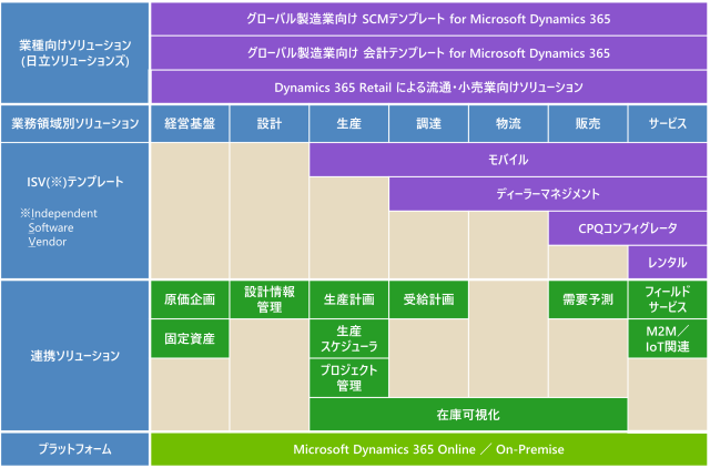 グローバル製造業向けSCMテンプレートは、Dynamics 365 をベースに日系製造業向けの機能を幅広く追加します。また、グローバル展開する日系企業のDynamics 365 導入に伴うコスト低減、期間短縮に寄与します。
