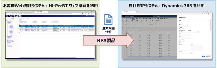 Microsoft Dynamics 365 を利用した基幹業務運用にRPA(Robotic Process Automation)製品を連携し、日常的に発生するルーティン業務の作業負荷の軽減、データ登録品質の向上が期待できます。