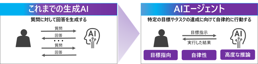 AIエージェントは「生成AIの技術を活用して、自律的に判断、行動するシステム」です。人の代わりに、あるいは人と一緒にタスクをこなすことができます。