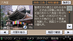 ※カメラを向けた施設にガイドブック情報がなかったり、その施設より近い位置にガイドブック情報を持った他施設がある場合には、別の情報が表示される場合もあります。