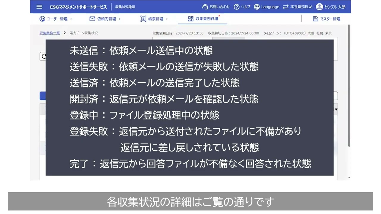 システム上は日本語、英語表示が可能であり、収集対象データについても日本語、英語で入力されたデータが対象となります。収集時に配布するExcelファイル上の任意シートには他言語を記載することが可能です。