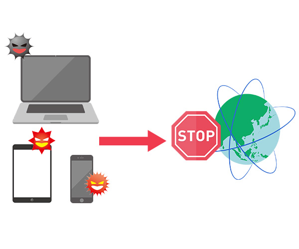 未管理のデバイスや、必要なセキュリティ対策製品を導入していない不正なデバイスを検出し、ネットワークへの接続を防止することが可能です。