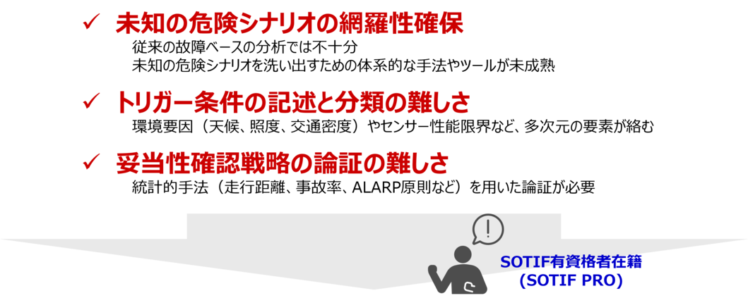 SOTIF対応では以下のような課題があげられます。