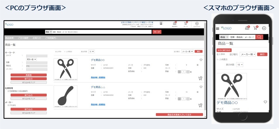| リピート注文 | 顧客ごとに業務に必要な商品は限られてくるため 必要な商品を簡単に、何度も注文するための仕組みが必要です。 |