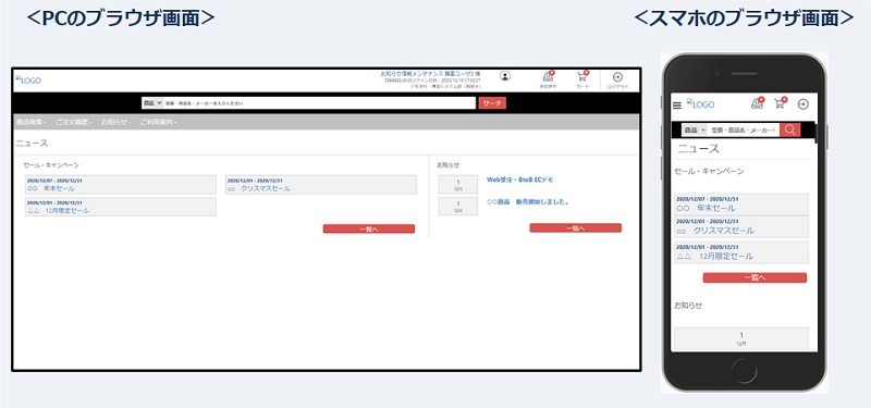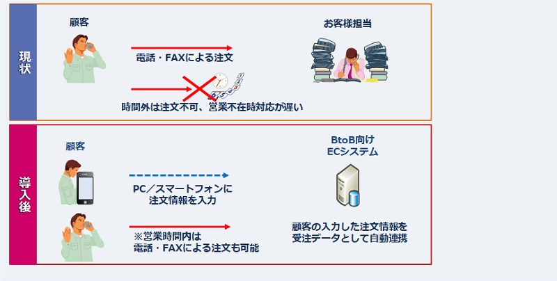 ECシステムをパソコン・スマホで操作し、いつでもどこでも注文の自動受付や情報配信を可能に。
