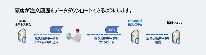 - 履歴データをダウンロードし、顧客の自社システムで利用することもできます。