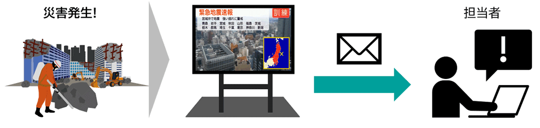 担当者へのメール送付など、災害時の一次対応の迅速化を支援します。