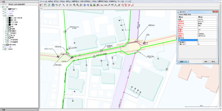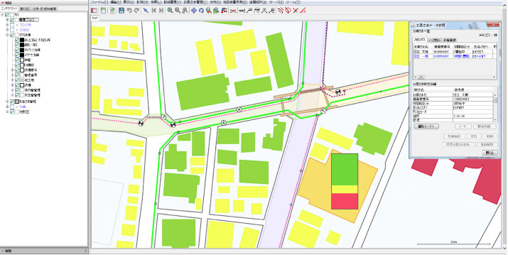 地図上からの設備属性表示、設備属性からの地図表示、といった双方向検索により、欲しい情報を瞬時に入手することができます。また、情報の更新・編集も簡単操作により行うことができます。
