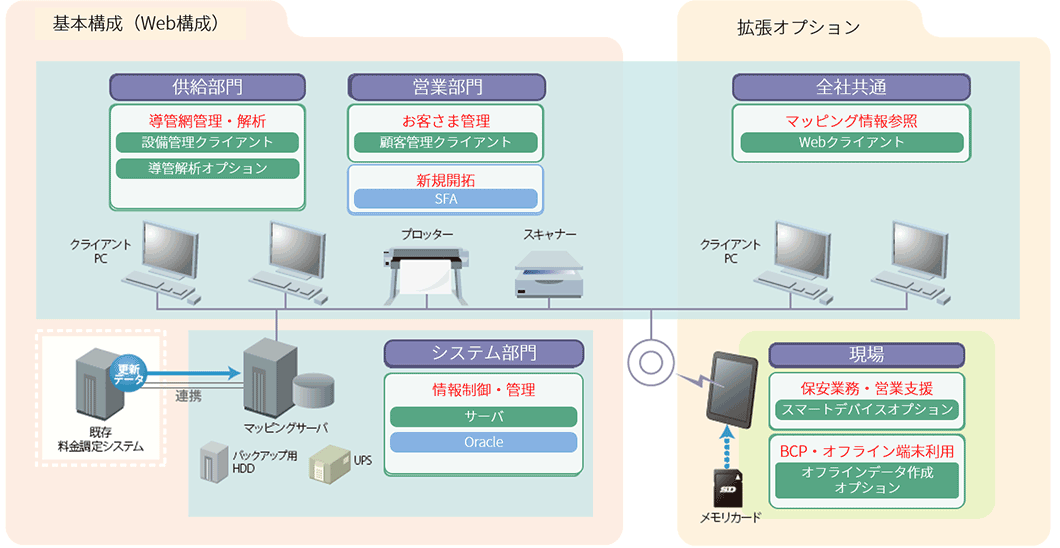 導管・設備からお客さま情報管理まで、ガス事業者のみなさまの声をパッケージソフトウェアに集約。情報の整備・蓄積/活用のための機能を装備しています。