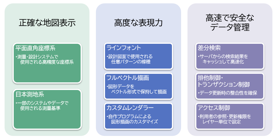 - 従来型のデスクトップGISと同等の機能性と操作性