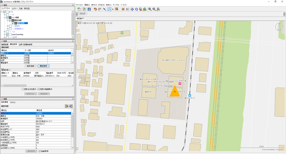 地図検索結果画面 GeoMation 地理情報システム マルチプラットフォームクライアント