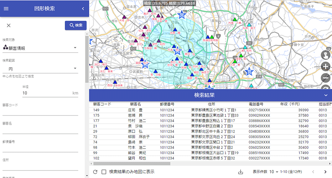 地図検索結果画面 GeoMation 地理情報システム クライアント