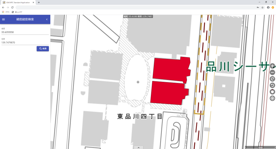 住所情報を元に、対象となる地図上の位置を特定する機能です。