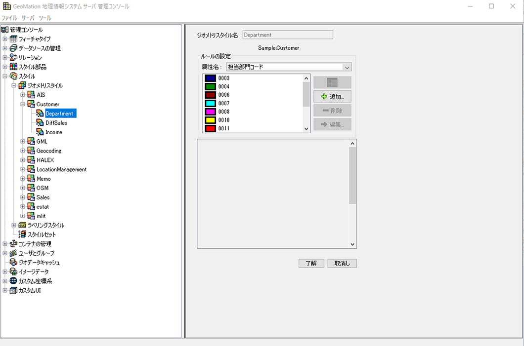 たとえば、「建物は通常緑色で表示されるが、築年数属性が10年以上のものは赤色で表示する」というような設定が可能です。