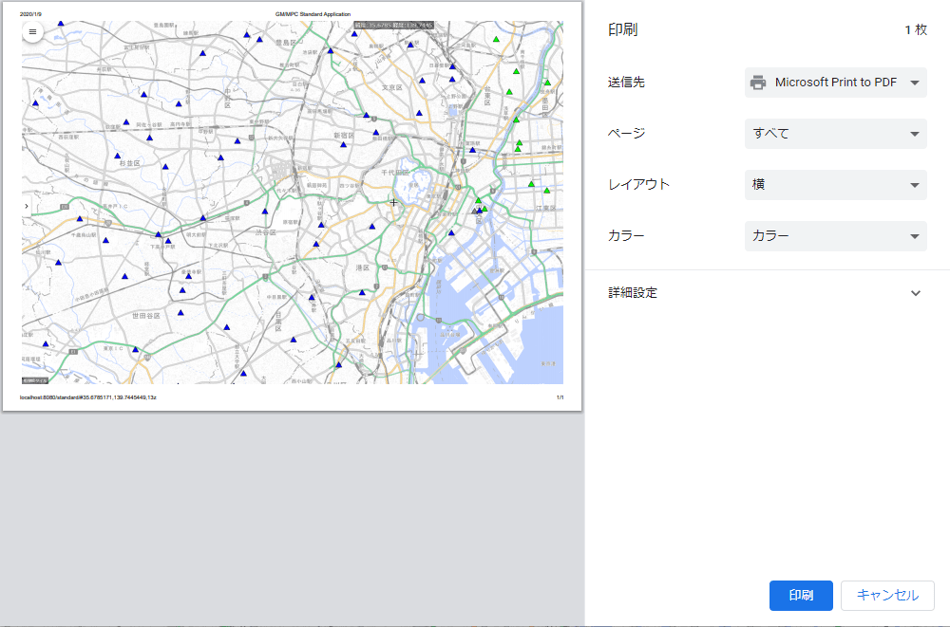 印刷プレビュー画面 GeoMation 地理情報システム マルチプラットフォームクライアント
