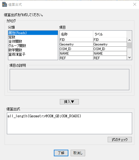 対象エリア内の業務情報(例:設備情報、顧客情報…)の属性情報について集計・演算処理(四則演算、関数演算)が可能です。