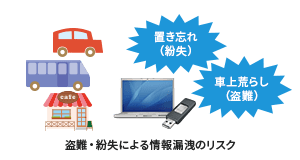 テレワークを実施する場合、PCやUSBメモリーなど会社の資産を社外に持ち出す機会が増えます。そのため、移動中に盗難に遭ったり紛失してしまい情報が漏洩してしまうリスクも増します。