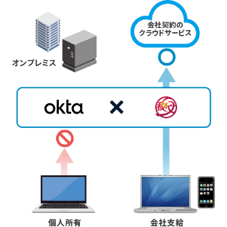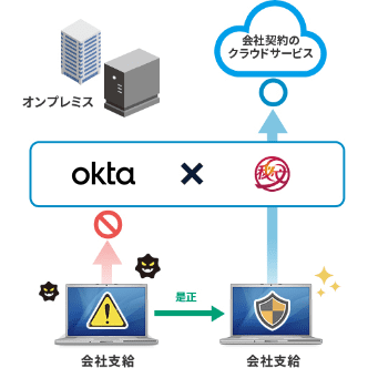 クラウド型ID管理・統合認証サービスを提供するOkta※5と連携し、Oktaによるユーザー認証に加え、デバイスの特定まで実現可能です。これにより、個人所有のデバイスや、セキュリティ対策が不十分なデバイスからのアクセスを制御することができます。