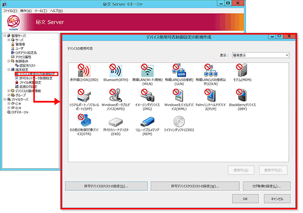秘文 Device Control、秘文 Data Encryptionを効果的に利用するために必要となる、デバイス制御機能のポリシー設定やログ取得・管理などの統合管理機能を提供します。