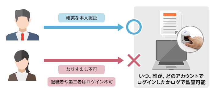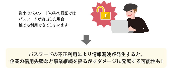 近年、ID+パスワードのみによる認証では、不正アクセスやなりすましのリスクが大きいとされ、さまざまなガイドラインで多要素認証(二要素認証)の利用が推奨されています。(※) 静紋の導入により、従来のID+パスワード認証に生体認証を追加することで、PCなど端末のセキュリティを強化できます。