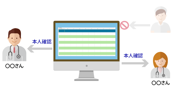 指示、処置者を偽れない環境になっているか? 運用にあわせた認証方式(指静脈・顔・ICカード)の選択は可能か? 緊急時の本人(権限)確認手段はあるのか?