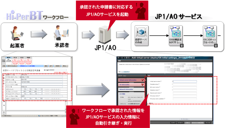 JP1/AOとHi-PerBT ワークフローを連携するときの申請書の作成支援を行います。