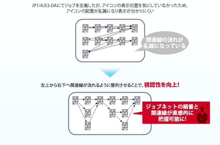 | ユースケース1 不要関連線削除によりジョブ間の視認性向上を実現 |