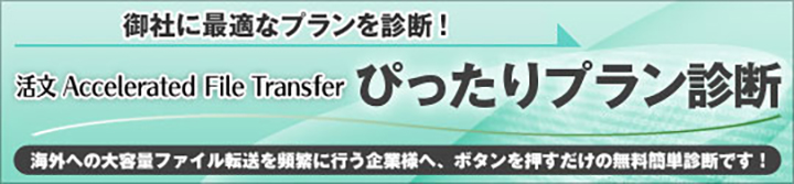 「活文 Accelerated File Transfer」は、GB(ギガバイト)サイズの大容量データを高速に転送できる法人向けのサービスです。新興国など通信インフラが未整備である地域とのデータ送信の際にも、既存のインターネット回線を利用してやり取りすることができます。