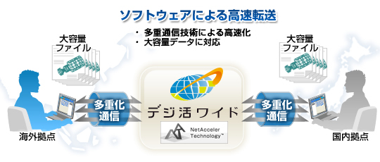 通信インフラが異なる海外にも大容量データを速く確実に送りたい