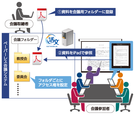 iPadを利用し、100名以上が参加するペーパーレス会議の運用基盤として「活文」を導入。