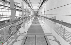 エレベーターの主要装置の耐用年数は概ね20年を目処とされており、老朽化した外装部の修繕や、機能が劣化した部材・設備などをリニューアルする必要がでてきます。 日立ビルシステムでも月間200〜300件のエレベーターのリニューアル案件があります。リニューアル前に必ず行うのが現地調査。古いエレベーターだと改修などにより製品納入時の図面と一致していない場合があり、正確な見積りを作成できません。そこで昇降路内の寸法を測定するために現地調査を実施します。