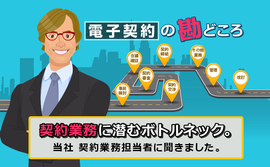 契約業務の効率化へ、いま電子契約に注目が集まっています。でも実は、契約業務のあらゆるプロセスに「ボトルネック」は潜んでいます。そこで、当社で長年にわたり国内外ベンダーとのアライアンス契約に携わってきた調達部 千葉に「隠れボトルネック」をインタビューし、その解決策を探っていきます。